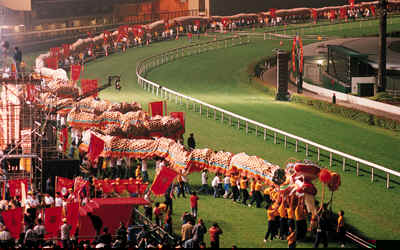 一條長 2 466米的巨龍在快活谷馬場歡騰起舞,爭取打入《健力士世界紀錄大全》。這項創紀錄的嘗試是香港社會服務聯會慶祝50週年的活動之一。
