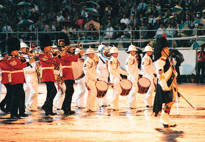 英國政府的告別儀式於六月三十日在中區添馬艦東部英國皇家海軍基地舊址舉行。整個儀式姿彩繽紛,其中包括由皇家海軍、陸軍及皇家空軍代表組成的軍樂隊和儀仗隊進行步操表演。
