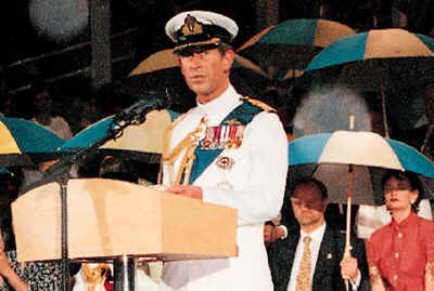 英國政府的告別儀式於六月三十日在中區添馬艦東部英國皇家海軍基地舊址舉行。告別儀式上,英國威爾斯親王代表女皇致辭。