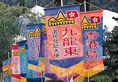 為呼籲市民在香港特別行政區首屆立法會選舉中登記為選民,當局舉行大型集會宣揚有關信息。