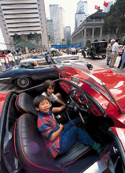 Happy children find themselves in the driver's seat at the Classic Car Show in Central.