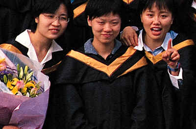 港理工大学的学生在毕业典礼上,兴高采烈地合照留念。