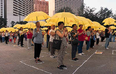 长者日的一项活动中,长者们张开雨伞,砌成"老有所为"4个字。