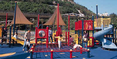 朋友在将军澳新建成的游乐设施玩耍,乐在其中。