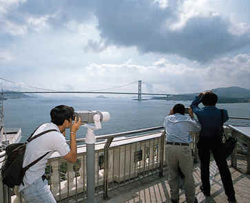 客在位于汀九的机场核心计划展览中心欣赏青屿干线的怡人景色。
