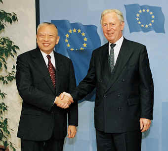 政长官董建华抵达布鲁塞尔,受到欧洲委员会主席桑特热烈欢迎。