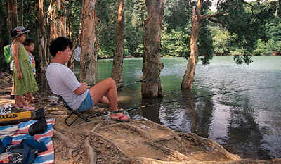 门水塘景致清幽,人们在此垂钓之余,大可沉思冥想,倍增钓鱼之乐。