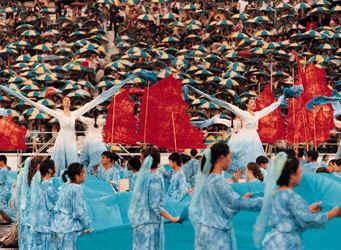 连串特别活动标志着香港特别行政区的成立,香港迈进新纪元。英国政府的告别仪式于六月三十日在中区添马舰东部英国皇家海军基地旧址举行。整个仪式姿彩缤纷,出席的观众上万人。连场倾盆大雨,迫得在场观众纷纷撑起雨伞,构成一个意想不到的画面。中西管弦乐团、儿童合唱团及舞蹈员在雨伞的衬托下冒雨演出。
