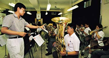 荃湾保良局李城璧中学一群学生,在音乐课上练习吹奏乐器。
