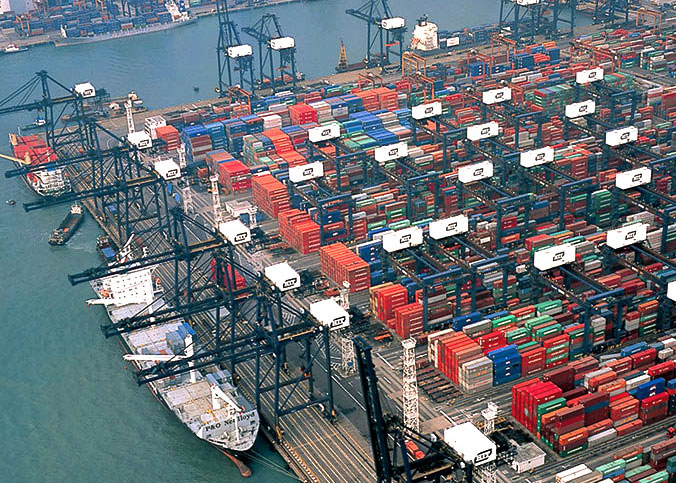 葵 涌 货 柜 码 头 内 的 货 柜 整 齐 排 列 。