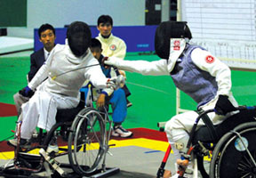 Fencing competition at the 8th FESPIC Games in the Republic of Korea.