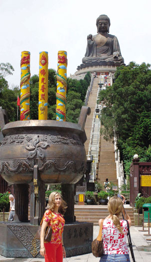 大 嶼 山 遠 離 塵 囂 , 有 截 然 不 同 的 風 貌 。 遊 客 可 拾 級 登 上 寶 蓮 寺 的 天 壇 大 佛 。